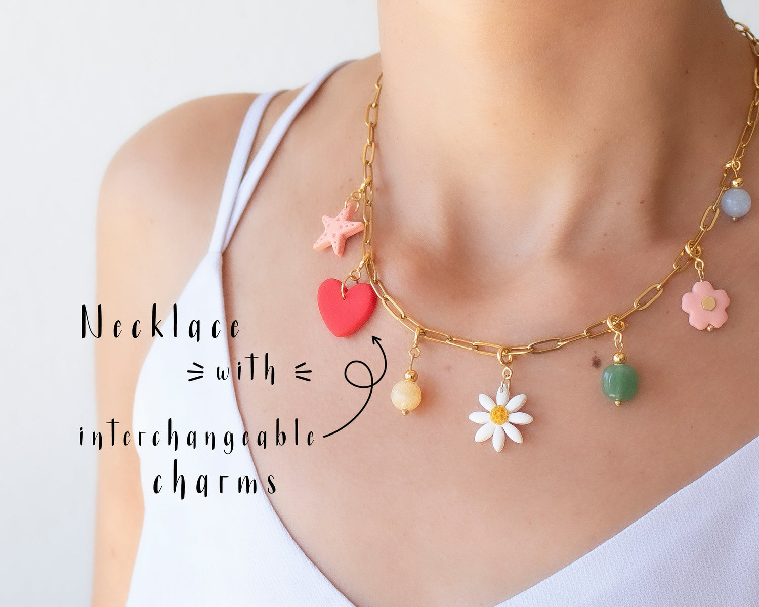 Interchangeable Charm Necklaces | Handmade Clay and Gemstone Charms