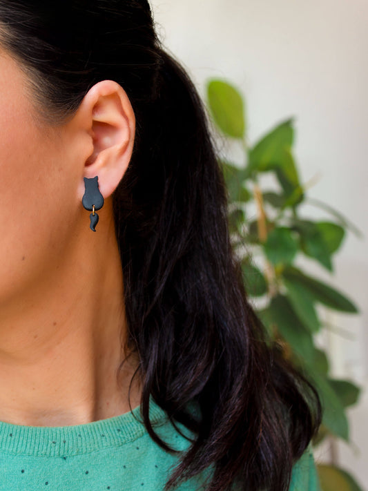 Black Cat Stud Earrings Handmade | Hypoallergenic Cat Lover Gift