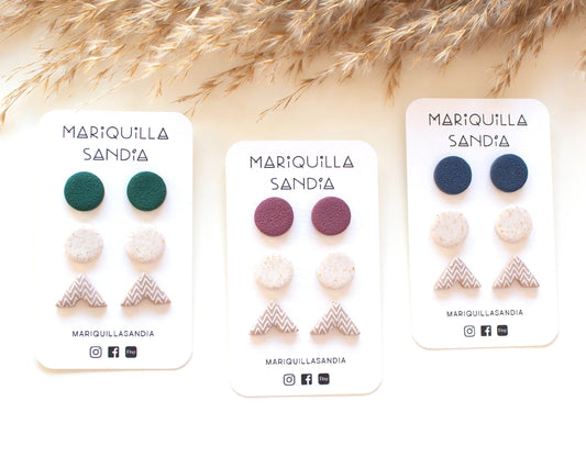 Boho Stud Earrings Set | Handmade Mismatched Earrings, Hypoallergenic Jewelry