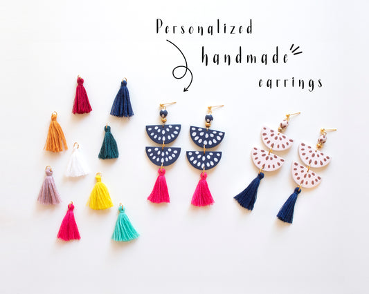 Large Boho Tassel Earrings | Colorful Handmade Clay Earrings for Women