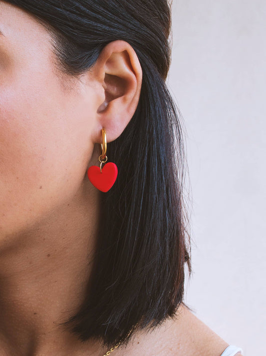 Heart Charm Hoop Earrings | Pink, Red & White Interchangeable Charms