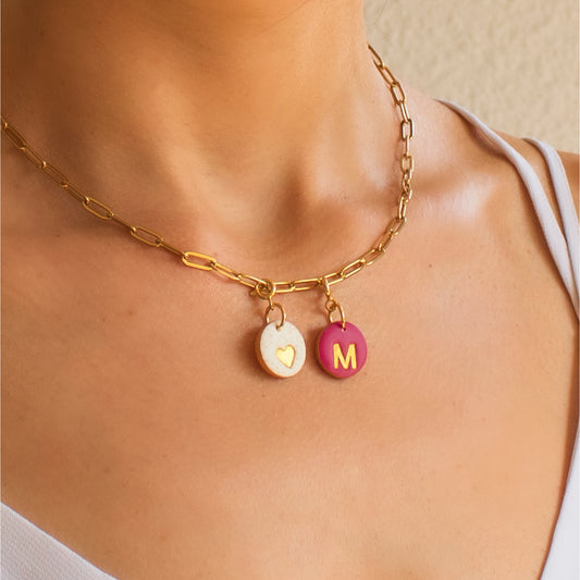 Personalize your necklace with handmade clay initials, available in 24 colors and...